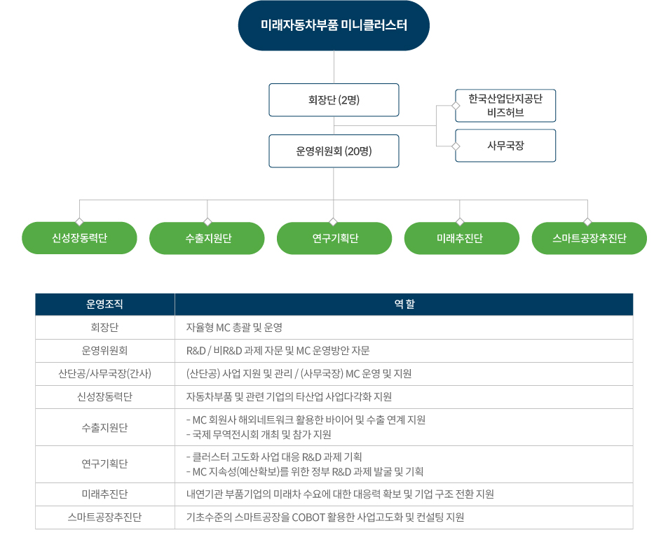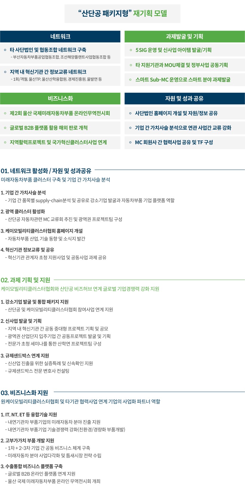 | 2019 | 07 | 미래자동차부품 미니클러스터 통합 운영 (자동차그린+생산기반 미니클러스터) |